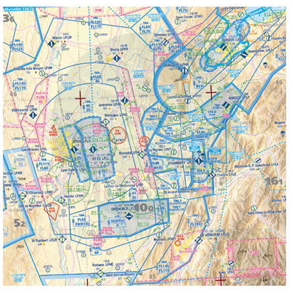 - Airspaces between H05 and FL195 (controlled areas from class A to class E, restricted areas, military training areas…)